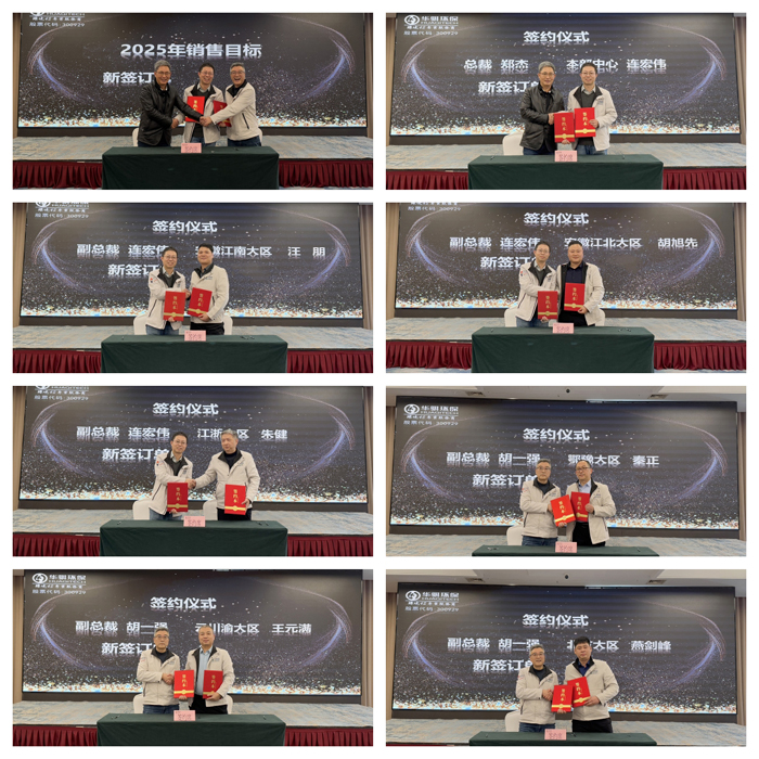 在隨后的市場經(jīng)營及品牌推廣工作匯報環(huán)節(jié)中,市場本部中心、安徽江南大區(qū)、安徽江北大區(qū)、江浙大區(qū)、鄂豫大區(qū)、云川渝大區(qū)、北方大區(qū)、品牌管理部的代表共同總結(jié)2024年市場環(huán)境及指標(biāo)完成情況。會議指出,市場部門要以國家“數(shù)字化”戰(zhàn)略為導(dǎo)向,以“智慧引領(lǐng)未來”為主線,制定行之有效的產(chǎn)品推廣計劃并予以貫徹執(zhí)行,是為2025年的重點工作。匯報結(jié)束后,市場各大區(qū)舉行了2025年銷售目標(biāo)簽約儀式。