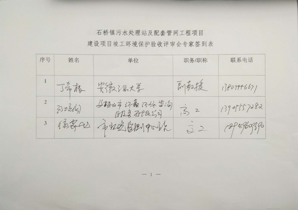 按照國(guó)家環(huán)保法規(guī),2018年4月1日當(dāng)涂縣華騏環(huán)境治理有限公司組織了對(duì)當(dāng)涂縣石橋鎮(zhèn)污水處理站及配套管網(wǎng)工程項(xiàng)目的建設(shè)項(xiàng)目竣工環(huán)境保護(hù)驗(yàn)收會(huì)議。參加會(huì)議的單位有安徽華騏環(huán)??萍脊煞萦邢薰尽?dāng)涂縣華騏環(huán)境治理有限公司、安徽威正測(cè)試技術(shù)有限公司。驗(yàn)收會(huì)議由三人組成的驗(yàn)收專(zhuān)家組(名單附后),與會(huì)代表現(xiàn)場(chǎng)檢查了該工程設(shè)施的運(yùn)行情況,聽(tīng)取了設(shè)計(jì)單位、施工單位、運(yùn)行單位和環(huán)境保護(hù)驗(yàn)收監(jiān)測(cè)單位關(guān)于工程設(shè)計(jì)、建設(shè)和驗(yàn)收監(jiān)測(cè)情況的匯報(bào),審查了《當(dāng)涂縣石橋鎮(zhèn)污水處理站及配套管網(wǎng)工程項(xiàng)目竣工環(huán)境保護(hù)驗(yàn)收?qǐng)?bào)告》等相關(guān)資料,根據(jù)工程實(shí)際完成和運(yùn)行情況,驗(yàn)收專(zhuān)家組針對(duì)驗(yàn)收材料給出以下意見(jiàn)及建議: