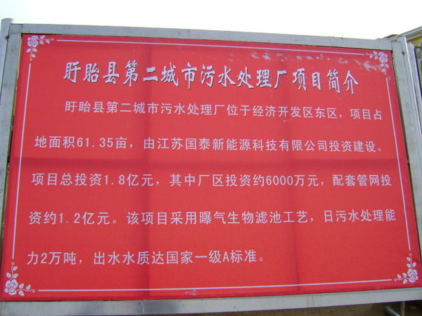 盱眙縣第二城市污水處理廠位于盱眙經(jīng)濟(jì)開發(fā)區(qū)內(nèi),為BOT項目,設(shè)計規(guī)模為4萬噸/日,分兩期建設(shè),一期工程2萬噸/日。