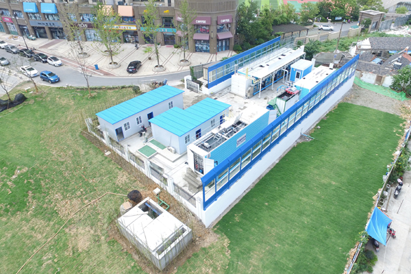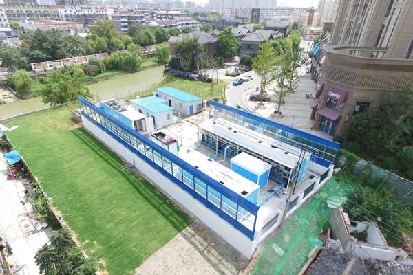 南京市浦口區(qū)南河流域凈水活水工程林公堤站點,處理規(guī)模2000m3/d,采用我司研發(fā)的Rapid-Move黑臭水體旁路處理系統(tǒng)——“魔方磁+魔方尊”組合工藝產(chǎn)品,從城南河西支沿河污水井和場站西側(cè)污水排口取水,提升至場站處理凈化達標后補水至上游西門橋處,作為河道補水水源。出水主要指標達到《地表水環(huán)境質(zhì)量標準》(GB3838-2002)Ⅴ類水標準,其中氨氮達到IV類水標準。