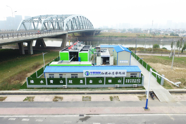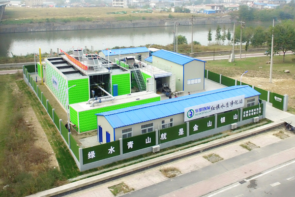合肥市南淝河流域應(yīng)急污水處理服務(wù)紅旗泵站位于上海路與濱河路交口西南角,工程占地約1230㎡,設(shè)計處理能力5000m3/d,采用我司研發(fā)的Rapid-Move黑臭水體旁路處理系統(tǒng)——“魔方磁(磁混凝系統(tǒng))+魔方尊(BAF系統(tǒng))”組合工藝產(chǎn)品。進水從柳蔭塘路下方自流箱涵末端取水,當水量不足時,從紅旗排澇泵站進水前池泵提取水或濱河路污水管網(wǎng)泵提取水,出水通過管道接入紅旗排澇泵站出水箱涵,出水達到地表準IV類水標準。