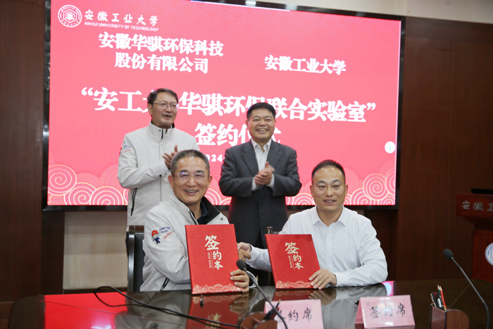 簽約儀式現(xiàn)場(chǎng) 11月12日,安徽華騏環(huán)??萍脊煞萦邢薰九c安徽工業(yè)大學(xué)整合雙方優(yōu)勢(shì),開展創(chuàng)新融合與跨界戰(zhàn)略合作,在安徽工業(yè)大學(xué)學(xué)術(shù)會(huì)議中心正式簽署《創(chuàng)建“水制氫與…